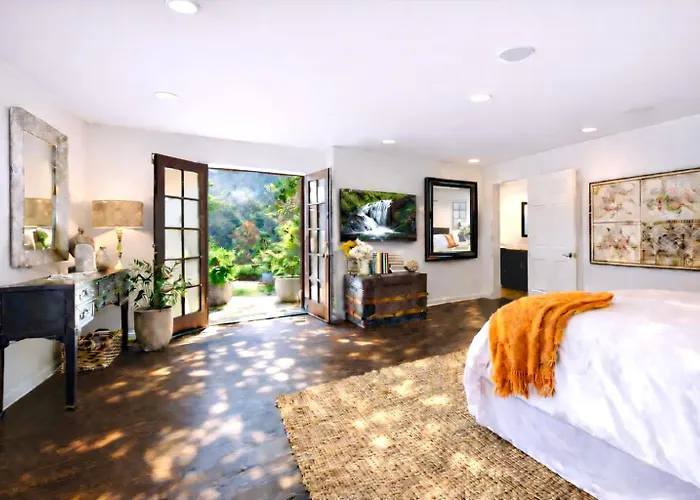Hollywood Hills Spa Retreat Oasis With Tree Top Views, Private Jacuzzi Style Tub, Steam Room, Magical Half Acre Acre Garden And Patio, Free Parking For 2 Cars, In La'S Most Serene, Central Desirable Area ロサンゼルス 別荘は、メイシーズ ビバリーセンター店などの賑やかなショッピング街から3.8km離れた所に位置し、無料の専用駐車場を利用できます。